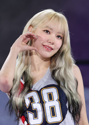 [스포티비뉴스=서울, 곽혜미 기자] 르세라핌 미니 3집 '이지(EASY)' 발매 기념 쇼케이스가 19일 오후 서울시 성북구 안암동 고려대학교 화정체육관에서 열렸다. 르세라핌 사쿠라가 포즈를 취하고 있다.