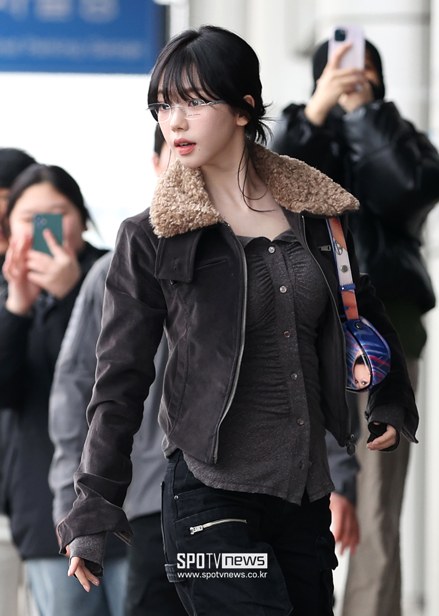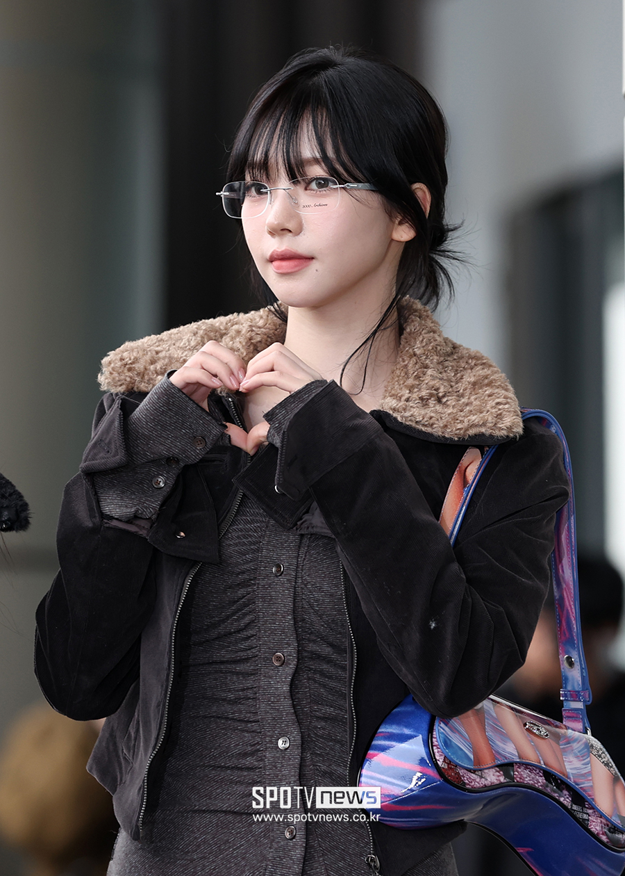 [스포티비뉴스=김포국제공항, 곽혜미 기자] 에스파 카리나가 긱시크(Geek Chic) 공항 패션으로 반전 매력을 뽐냈다.