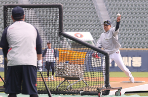 [스포티비뉴스=잠실, 곽혜미 기자] 2024 신한 SOL Bank KBO리그 두산 베어스와 한화 이글스의 경기가 11일 오후 서울 송파구 잠실야구장에서 열린다. 두산 이승엽 감독이 배팅볼을 던져주고 있다.