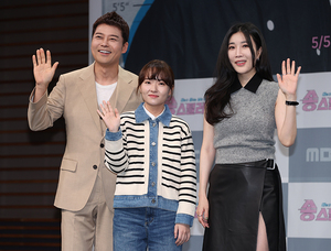 [스포티비뉴스=서울, 곽혜미 기자] MBC 새 예능 '송스틸러' 제작발표회가 3일 오전 서울 마포구 상암동 MBC 골든마우스홀에서 진행됐다. 방송인 전현무, 장하린 PD, 다비치 이해리가 포즈를 취하고 있다.