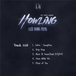 3일 공식 SNS 채널을 통해 공개된 이동열 첫 번째 미니 앨범 '하울링' 트랙리스트는 타이틀곡 '드립 드롭'을 비롯해 인트로곡 '인트로 : 인셉션' '번 잇 다운' ‘히어 위드 미’ ‘피스 오브 유’ 등 5개의 곡이 채우고 있다.