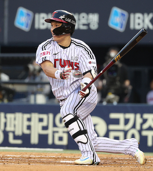 [스포티비뉴스=잠실, 곽혜미 기자] 2024 신한 SOL Bank KBO리그 LG 트윈스와 두산 베어스의 경기가 3일 오후 서울 송파구 잠실야구장에서 열렸다. 2회말 1사 2루 상황에서 LG 박동원이 1타점 적시타를 날리고 있다