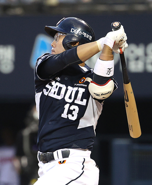 [스포티비뉴스=잠실, 곽혜미 기자] 2024 신한 SOL Bank KBO리그 LG 트윈스와 두산 베어스의 경기가 3일 오후 서울 송파구 잠실야구장에서 열렸다. 3회초 무사 2루 상황에서 두산 허경민이 안타를 날리고 있다.