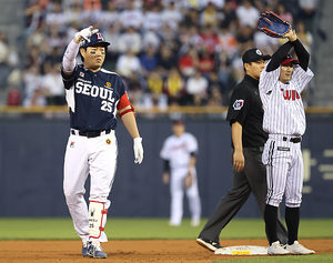 [스포티비뉴스=잠실, 곽혜미 기자] 2024 신한 SOL Bank KBO리그 LG 트윈스와 두산 베어스의 경기가 3일 오후 서울 송파구 잠실야구장에서 열렸다. 3회초 1사 2,3루 상황에서 두산 양의지가 2타점 적시타를 날리고 세리머니를 하고 있다.