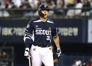 [스포티비뉴스=잠실, 곽혜미 기자] 2024 신한 SOL Bank KBO리그 LG 트윈스와 두산 베어스의 경기가 3일 오후 서울 송파구 잠실야구장에서 열렸다. 4회초 선두타자로 나선 두산 김재환이 삼진을 당하고 있다.