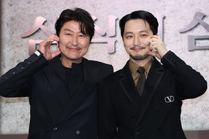 [스포티비뉴스=서울, 곽혜미 기자] 디즈니+ 웹드라마 '삼식이 삼촌' 제작발표회가 8일 오전 서울 강남구 삼성동 그랜드 인터컨티넨탈 서울 파르나스에서 열렸다. 배우 송강호, 변요한이 포즈를 취하고 있다.