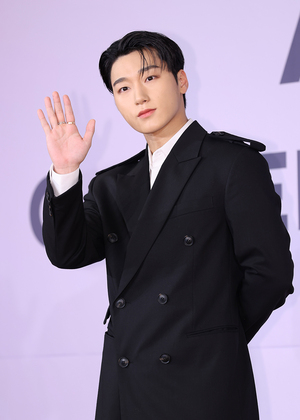 [스포티비뉴스=서울, 곽혜미 기자] 그룹 에이티즈 미니 11집 '골든 아워 : 파트 2(GOLDEN HOUR : Part.2)' 발매 기념 기자간담회가 14일 오후 서울 송파구 잠실 롯데호텔 월드에서 열렸다. 산이 포즈를 취하고 있다.