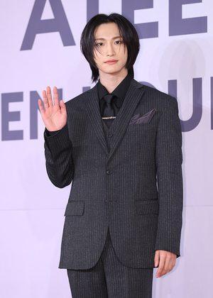 [스포티비뉴스=서울, 곽혜미 기자] 그룹 에이티즈 미니 11집 '골든 아워 : 파트 2(GOLDEN HOUR : Part.2)' 발매 기념 기자간담회가 14일 오후 서울 송파구 잠실 롯데호텔 월드에서 열렸다. 성화가 포즈를 취하고 있다.