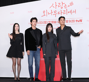 [스포티비뉴스=서울, 곽혜미 기자] 배우 김예원, 이시우, 정유미, 주지훈이 18일 오후 서울 구로구 신도림동 라마다 호텔에서 진행된 tvN 드라마 '사랑은 외나무다리에서' 제작발표회에 참석해 포즈를 취하고 있다.
