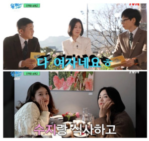 이날 유재석이 "인맥이 참 두텁더라. 김혜수와 훌쩍 여행을 떠나고 수지와 밥 먹고 강민경 씨와 술을 한 잔 하던데"라고 말하자 송혜교는 "다 여자네요"라며 씁쓸해 했다.