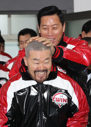 [스포티비뉴스=잠실, 곽혜미 기자] 2025 LG 트윈스 시무식이 8일 오후 서울 송파구 잠실야구장에서 열렸다. LG 이병규 퓨처스 감독이 김용일 코치와 인사를 나누고 있다.