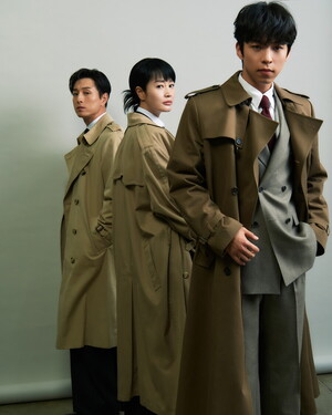 팀장 ‘오소룡’ 역의 김혜수는 날카로운 눈빛으로 카메라를 응시하며 특별한 카리스마를 발휘하고 있다. 중고신입 ‘한도’ 역의 정성일은, 조연출 ‘강기호’ 역의 주종혁도 같은 톤의 트렌치코트를 입고 한 팀의 분위기를 냈다.