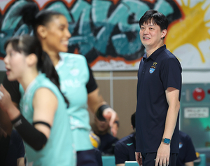 [스포티비뉴스=장충, 곽혜미 기자] 도드람 2024-2025 V리그 여자부 GS칼텍스와 정관장의 경기가 10일 오후 서울 장충체육관에서 열렸다. GS칼텍스 이영택 감독이 경기를 지켜보고 있다.