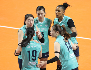 [스포티비뉴스=장충, 곽혜미 기자] 도드람 2024-2025 V리그 여자부 GS칼텍스와 정관장의 경기가 10일 오후 서울 장충체육관에서 열렸다. GS칼텍스 선수들이 기뻐하고 있다.