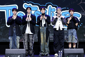 [스포티비뉴스=서울, 곽혜미 기자] 그룹 위아이 미니 7집 'The Feelings(더 필링스)' 발매 기념 쇼케이스가 15일 오후 서울 서대문구 신촌 예스24 원더로크홀에서 열렸다. 위아이가 포즈를 취하고 있다.