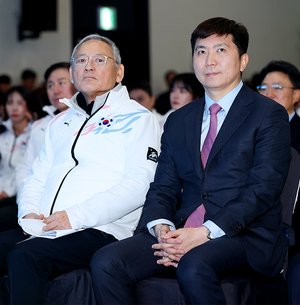 [스포티비뉴스=방이동, 곽혜미 기자] 2025 하얼빈 동계아시안게임 대한민국 선수단 결단식이 24일 오후 서울 송파구 방이동 올림픽파크텔 올림피아홀에서 열렸다. 유인촌 문화체육부 장관과 유승민 대한체육회장 당선인이 무대를 바라보고 있다.