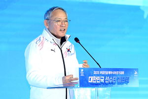 [스포티비뉴스=방이동, 곽혜미 기자] 2025 하얼빈 동계아시안게임 대한민국 선수단 결단식이 24일 오후 서울 송파구 방이동 올림픽파크텔 올림피아홀에서 열렸다. 유인촌 문화체육부 장관이 인사말을 하고 있다.