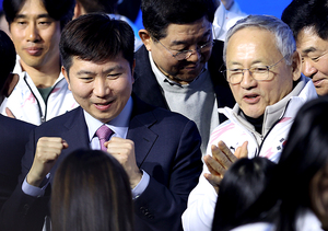 [스포티비뉴스=방이동, 곽혜미 기자] 2025 하얼빈 동계아시안게임 대한민국 선수단 결단식이 24일 오후 서울 송파구 방이동 올림픽파크텔 올림피아홀에서 열렸다. 유승민 대한체육회장 당선인과 유인촌 문화체육부 장관이 선수들을 격려하고 있다.