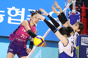 [스포티비뉴스=인천, 곽혜미 기자] 도드람 2024-2025 V리그 여자부 흥국생명과 현대건설의 경기가 25일 오후 인천삼산월드체육관에서 열렸다. 흥국생명 김연경이 공격을 시도하고 있다.