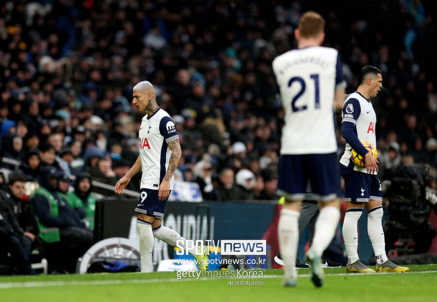 토트넘은 26일(이하 한국시간) 영국 런던의 토트넘 홋스퍼 스타디움에서 열린 2024-25시즌 잉글랜드 프리미어리그 23라운드 레스터시티와 홈경기에서 1-2로 패배했다.