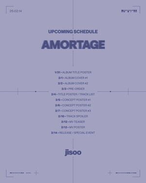 지수 소속사 블리수는 오는 2월 14일 오후 2시 미니앨범 '아모르타주'를 발표한다고 27일 밝혔다.