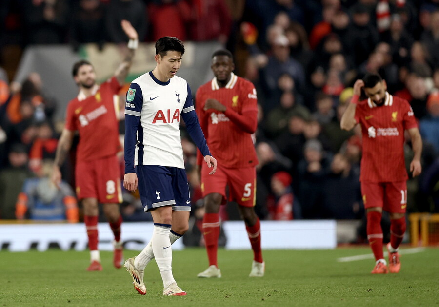 토트넘은 7일(이하 한국시간) 영국 리버풀의 안필드에서 열린 2024-25시즌 카라바오컵 준결승 2차전에서 리버풀에 0-4로 대패했다.