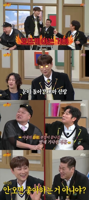이날 오프닝에서 이수근은 '새신랑' 민경훈을 두고 "지금 민경훈 컨디션 안 좋아. 제수씨 3일 동안 집에 안 들어왔대"라고 신혼 소식을 알렸다.