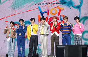 [스포티비뉴스=서울, 곽혜미 기자] 이븐(EVNNE) 네 번째 미니 앨범 '핫 메스(HOT MESS)' 발매 기념 쇼케이스가 10일 오후 서울 광진구 광장동 예스24라이브홀에서 열렸다. 이븐이 포즈를 취하고 있다.