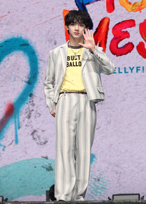 [스포티비뉴스=서울, 곽혜미 기자] 이븐(EVNNE) 네 번째 미니 앨범 '핫 메스(HOT MESS)' 발매 기념 쇼케이스가 10일 오후 서울 광진구 광장동 예스24라이브홀에서 열렸다. 유승언이 포즈를 취하고 있다.