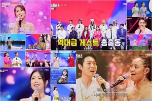 한국 트로트의 자존심을 건 ‘정통 트로트’ 장르 대결에는 특별히 크리스탈 케이가 승자를 결정하면서 린과 별사랑, 마이진, 전종혁의 승부욕을 불태웠다. 마이진은 ‘청풍명월’로 구수한 꺾기가 어우러진 진한 맛을 선보였고, 요즘 영혼의 단짝이 됐다는 린과 별사랑은 ‘마포종점’을 간드러진 목소리와 완급 조절 창법으로 뿜어냈다.