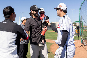 켈리는 미국으로 돌아간 뒤 신시내티와 마이너리그 계약을 하고 메이저리그 무대도 짧지만 한 차례 밟았다. 2025년도 현역으로 던진다는 목표를 가지고 있다. 그런 켈리는 16일(한국시간) LG의 팀 스프링캠프가 열리고 있는 미 애리조나주 스코츠데일을 깜짝 방문해 많은 이들을 놀라게 했다. 켈리는 옛 동료들을 놀라게 하고 싶은 마음에 사전에 방문 일정을 통보하지 않았던 것으로 알려졌다. 일정이 비밀이었다. 선수단이 들썩인 것은 당연했다. 1차 캠프 막바지로 선수들이 전체적으로 지칠 타이밍이었는데 오히려 켈리의 등장이 하나의 에너지가 됐다는 것은 분명해 보인다. 켈리 또한 기분 전환을 할 수 있는 하루였다.