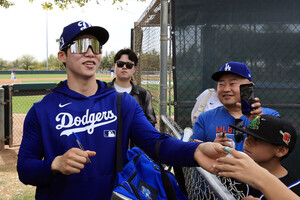 오타니 쇼헤이, 무키 베츠, 프레디 프리먼, 블레이크 스넬 등 스타들이 즐비한 이날 다저스 스프링 트레이닝장엔 이들은 보기 위해 수백 명 팬이 운집했다.
