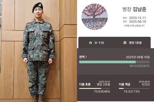 해당 사진에는 전역 디데이가 담겼으며, 병장인 RM은 제대를 110일 앞두고 있다. 이에 많은 팬들의 기대가 커지고 있다.