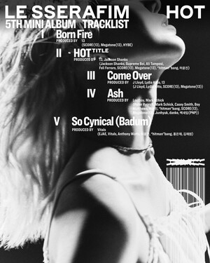 쏘스뮤직은 4일 르세라핌의 5번째 미니앨범 ‘핫’ 트랙리스트를 게재했다.
