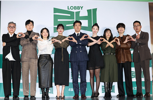 [스포티비뉴스=서울, 곽혜미 기자] 영화 '로비' 제작보고회가 4일 오전 서울 광진구 자양동 롯데시네마 건대입구점에서 열렸다. 배우 김의성, 박병은, 강말금, 차주영, 최시원, 강해림, 곽선영, 이동휘, 하정우가 포즈를 취하고 있다.