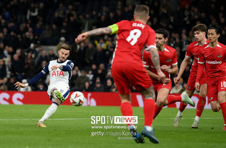 스펜스가 바지런히 따라 왔다. 매디슨은 넓은 공간을 앞데 둔 스펜스에게 다시 패스했고 스펜스는 이후 손흥민과 공을 주고받은 뒤 알크마르 왼 측면에서 낮은 크로스를 올렸다.