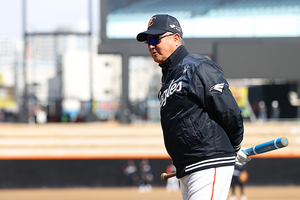 [스포티비뉴스=대전, 곽혜미 기자] 2025 신한 SOL Bank KBO리그 한화 이글스와 삼성 라이온즈의 시범 경기가 17일 오후 대전 한화생명 볼파크에서 열린다. 한화 김경문 감독이 훈련을 지켜보고 있다.