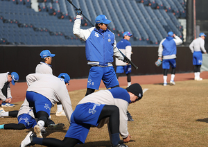 [스포티비뉴스=대전, 곽혜미 기자] 2025 신한 SOL Bank KBO리그 한화 이글스와 삼성 라이온즈의 시범 경기가 17일 오후 대전 한화생명 볼파크에서 열린다. 삼성 선수들이 훈련을 하고 있다.