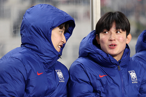 [스포티비뉴스=고양, 곽혜미 기자] 2026 FIFA 북중미 월드컵 아시아 3차 예선 대한민국과 오만의 경기가 20일 오후 고양종합운동장에서 열렸다. 이강인, 양민혁이 벤치에서 경기를 지켜보고 있다.
