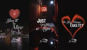 공개된 리릭 포스터에는 야경을 배경으로 터지는 하트 모양의 폭죽, 비가 내린 감성적인 밤거리에 걸린 '사인' 표지판, 일렁이는 하트 심볼이 담겨 시선을 단번에 사로잡았다.