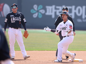 [스포티비뉴스=수원, 곽혜미 기자] 2025 신한 SOL Bank KBO리그 KT 위즈와 한화 이글스의 경기가 22일 오후 수원 KT위즈파크에서 열렸다. 1회말 선두타자로 나선 KT 강백호가 2루타를 날리고 기뻐하고 있다.