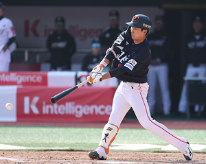 [스포티비뉴스=수원, 곽혜미 기자] 2025 신한 SOL Bank KBO리그 KT 위즈와 한화 이글스의 경기가 22일 오후 수원 KT위즈파크에서 열렸다. 7회초 1사 2루 상황에서 대타로 나선 한화 황영묵이 1타점 동점 적시타를 날리고 있다.