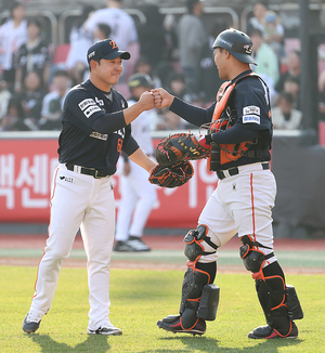 [스포티비뉴스=수원, 곽혜미 기자] 2025 신한 SOL Bank KBO리그 KT 위즈와 한화 이글스의 경기가 22일 오후 수원 KT위즈파크에서 열렸다. 4-3으로 승리한 한화 주현상, 이재원이 기뻐하고 있다.