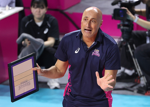 [스포티비뉴스=인천, 곽혜미 기자] 도드람 2024-2025 V리그 여자부 흥국생명과 정관장의 챔피언결정 4차전이 8일 오후 인천삼산월드체육관에서 열렸다. 흥국생명 아본단자 감독이 작전 지시를 하고 있다.