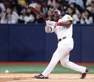 [스포티비뉴스=고척, 곽혜미 기자] 2025 신한 SOL Bank KBO리그 키움 히어로즈와 LG 트윈스의 경기가 10일 오후 서울 구로구 고척스카이돔에서 열렸다. 1회말 1사 키움 푸이그가 땅볼을 날리고 있다.
