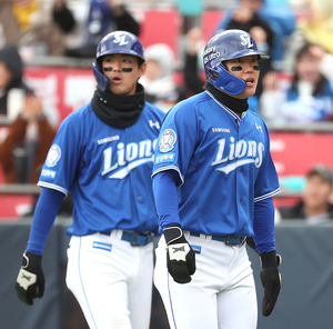 [스포티비뉴스=수원, 곽혜미 기자] 2025 신한 SOL Bank KBO리그 KT 위즈와 삼성 라이온즈의 경기가 13일 오후 수원 KT위즈파크에서 열렸다. 7회초 무사 2,3루 삼성 강민호 내야 땅볼 때 나온 KT 장성우 포수의 송구 실책 때 류지혁, 구자욱이 득점에 성공했다.