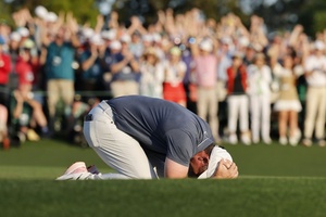 마침내 꿈에 그리던 '그린 재킷'을 입게 된 매킬로이는 그대로 그린에 무릎을 꿇은 채 기쁨의 눈물을 쏟아냈다.