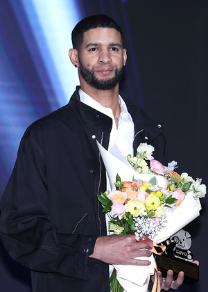 [스포티비뉴스=홍은동, 곽혜미 기자] 2024-2025 V리그 시상식이 14일 오후 서울 서대문구 홍은동 스위스 그랜드 호텔에서 열렸다. 20주년 역대 BEST7에 선정된 레오가 소감을 말하고 있다.
