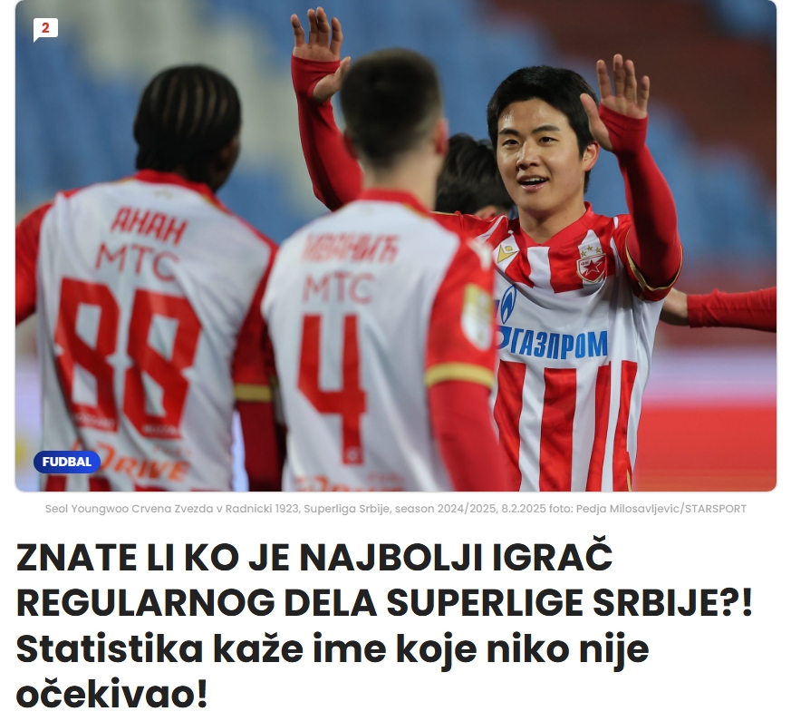 이어 "한국의 붉은 보석(Korejanski dragulji)으로 불릴 만하다. 그의 활약에 힘입어 즈베즈다는 시즌 종료를 7경기나 남겨두고 정규리그 우승을 확정했다"고 덧붙였다.