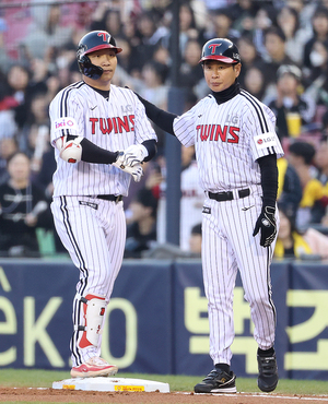 [스포티비뉴스=잠실, 곽혜미 기자] 2025 신한 SOL Bank KBO리그 LG 트윈스와 삼성 라이온즈의 경기가 15일 오후 서울 송파구 잠실야구장에서 열렸다. 1회말 1사 1,2루 상황에서 LG 문보경이 선취 1타점 적시타를 날렸다.